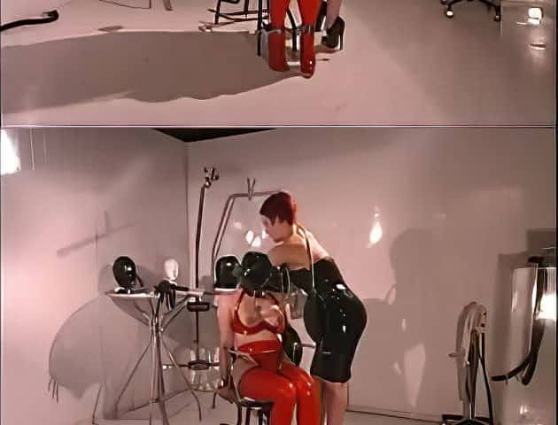 Chesty Lesbians In Red Latex Milking Their Cunts