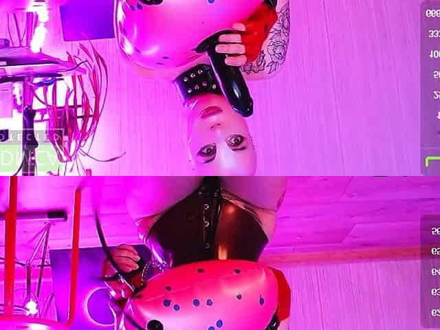 JulietteLoren flashes tits and rubs clit through the latex