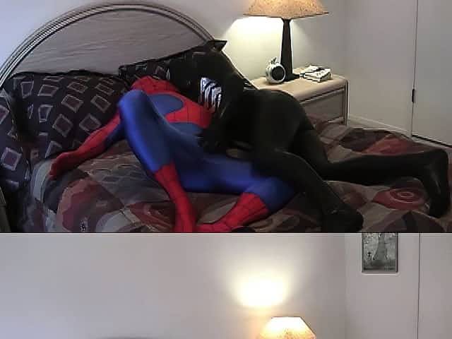 Dude dressed as Venom gets down and flirty with a gay Spider-man