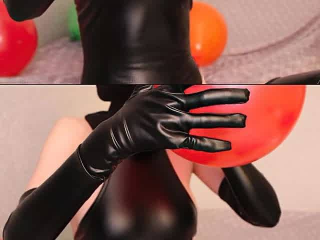 SLIM GAL IN LATEX PLAYS WITH BALLOONS / SQUEEZE / JUMP / PLAY WITH FEET / ASMR / CLOSE UP