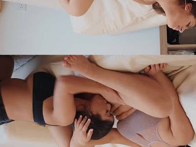 Licking my roommate's melons and clit