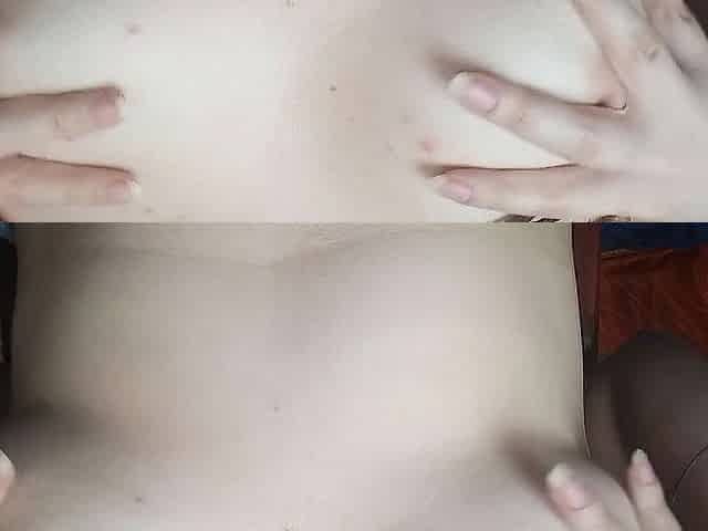 jugando con sus pequeñas tetas