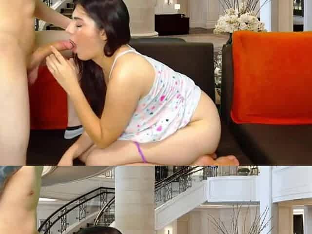 Horny girlfriend took a break from movie watching as she took his dick in her mouth