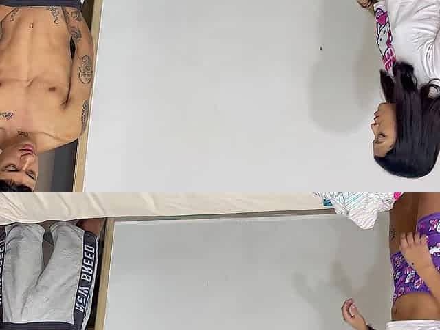 Mi tímida hermanastra me sorprende masturbándome con su ropa inward y me la follo duro hasta corre