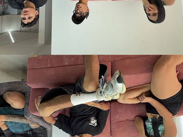 Young slut Gabi Manhaes gets hardcore anal fucking with DP ,footjob