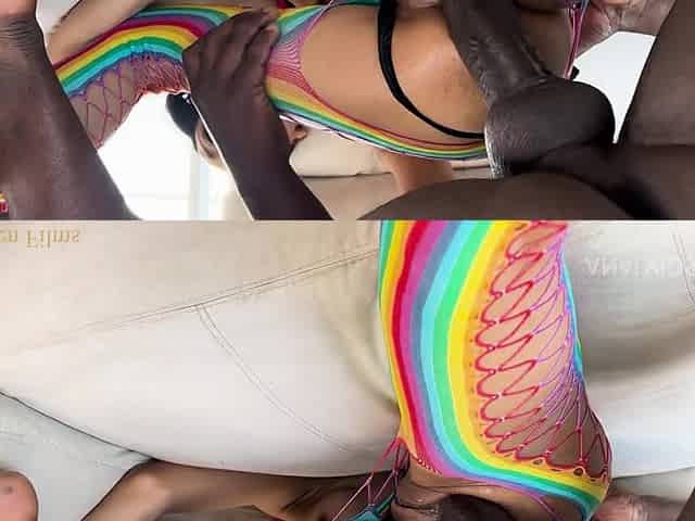 Cute Brazilia Priscila Belini getting fucked by 2 big black cocks