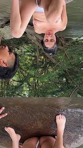 Latin Guy Watches Shy Sexy Girl Naked in the River and Ends up with a Rich Hard Fuck Outdoors.