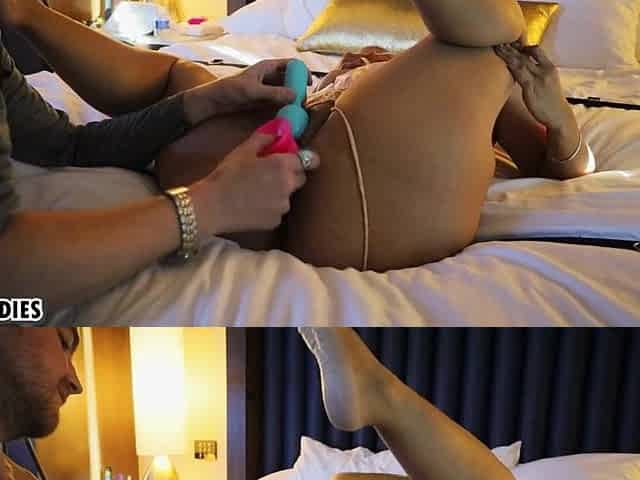 beauty suffers by inserting a 40 cm sextoy up her butt and cums