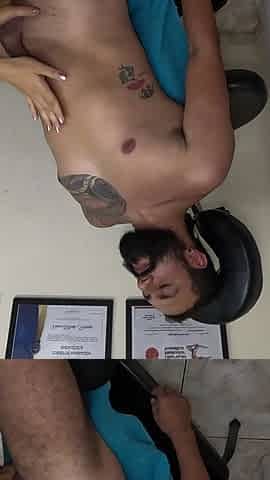 A dude clothed as a woman screws a hawt brunette hair during the time that riding his knob