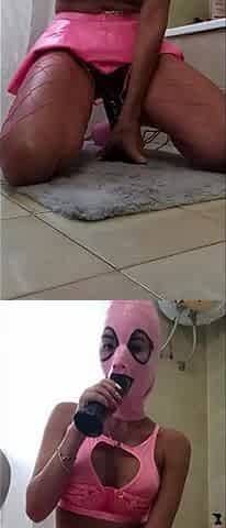 My wench wife on white costume, high heels and pink hose sucks my penis with excitement