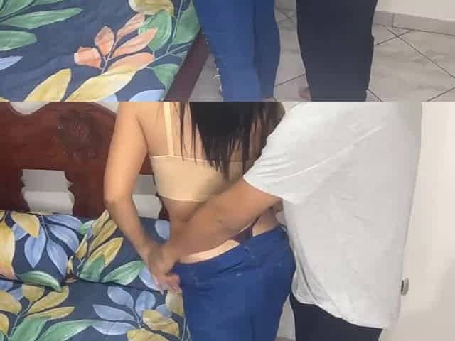 My glamorous stepmother trying on her recent jeans