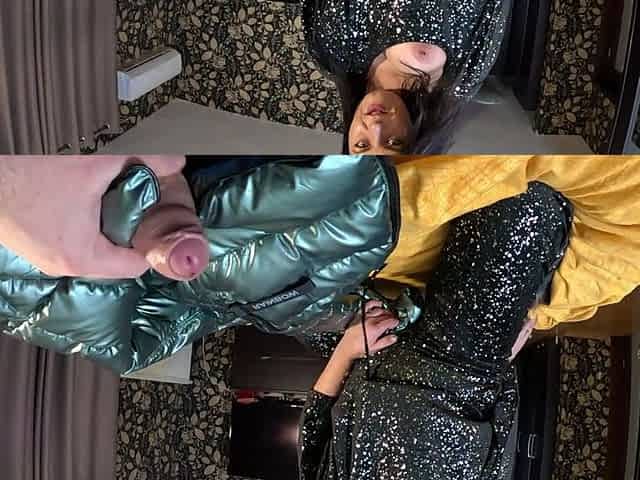 Caught Him Masturbating with My Shiny Work Downjacket - Deepthroat, Spit & Cumshot JOI