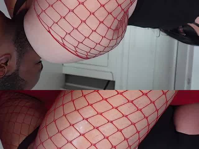 All About Ass, Scene 05, Dressed in sheer, seamed stockings and frilly lingerie, glamorous American-Latina beauty Vicki Chase te