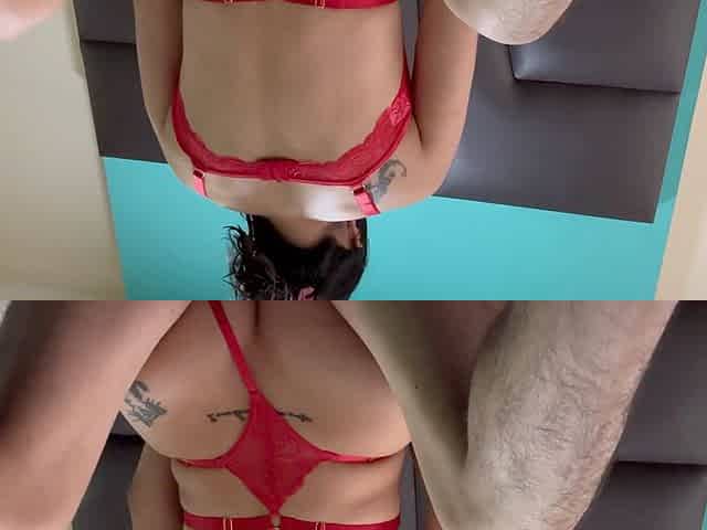 Follada de garganta y acabada en la cara a esta putita tetona de argentina.