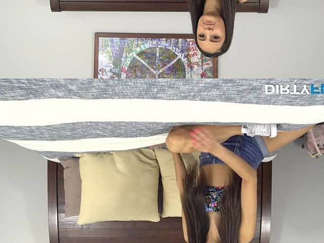 Short Latina teen Julia Cruz enjoys two dicks at once