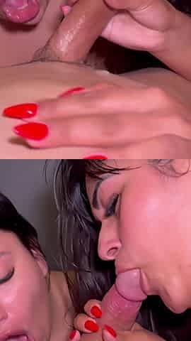 Extreme Threesome Fuck - Sexy Redhead and Blonde in Wild Hardcore Cowgirl Ride and Doggy Style Fuck