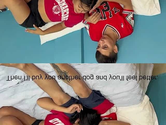 Enseño a mi pequeña hermanastra a cabalgar como una puta a escondidas en mi habitación.