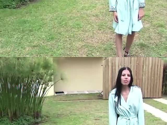 Latin brunette hair with large breasts, Gali is offering her constricted butt aperture to a younger man