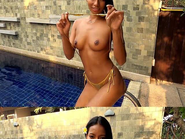 Young beautiful Brazilian model Chloe is swimming naked in the pool
