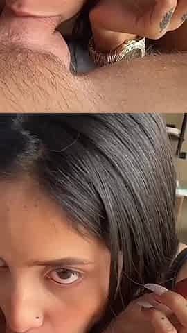 Steamy Latina stepsister gives a deep throat in a public bathroom and swallows in the car