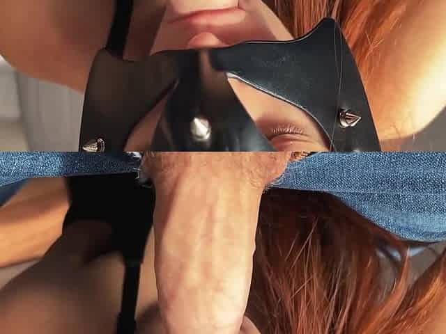 Horny girl in leather foot job and cock sucking