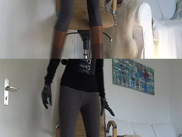 Slut in pantyhose on her leather chair