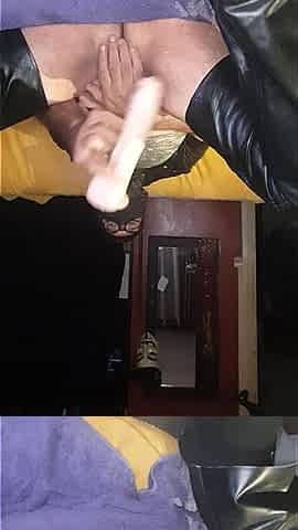 Lustful brunette presents double penetration and fuck herself in both holes in leather boots...