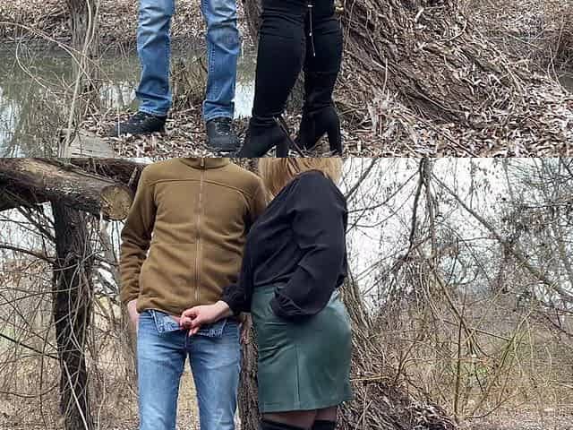Squeezing my mother in law's fat ass in a leather skirt before she helps me pee outside