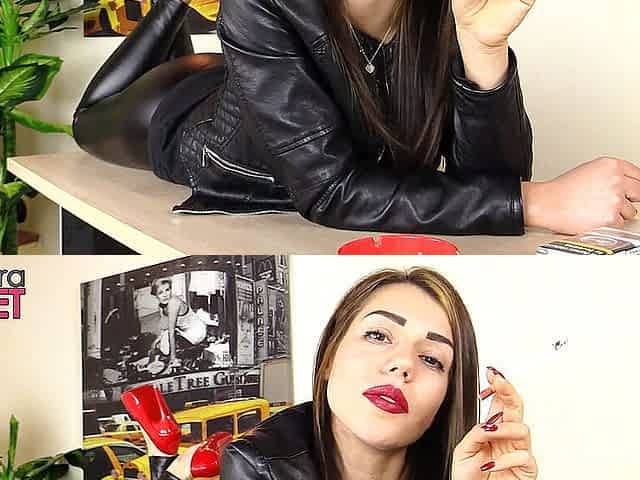 Sofia Cucci live web with a black leather suit