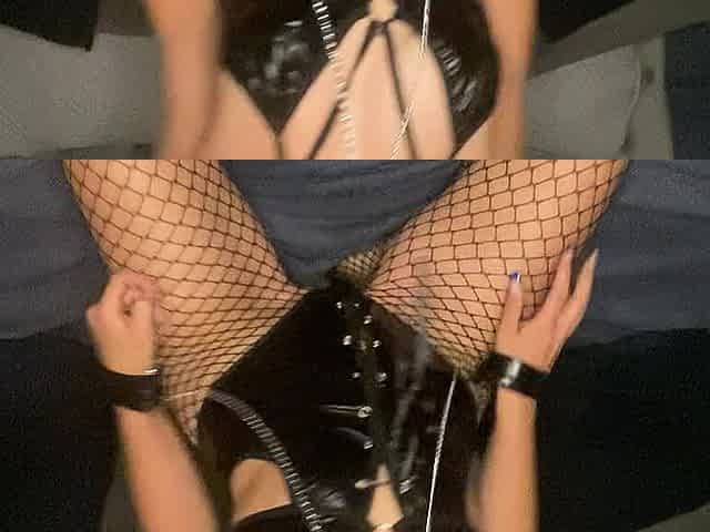Laura on heels wears leather body, boots over the knees and pantyhose. Rough blowjob and massive creampie. Full video
