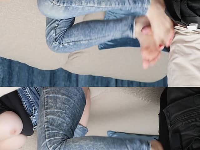 Teen hottie does footjob in boots and fucked wearing ripped jeans