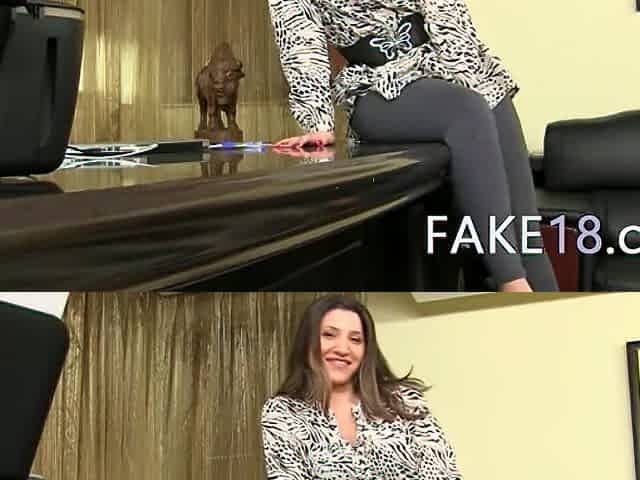 Fake agent having bang on leather couch