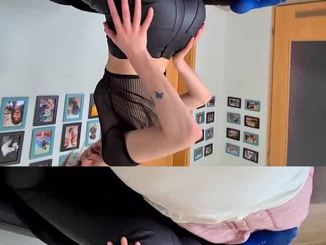 Leather Girl Fucked On Fitness Balcony Close To Neighbors