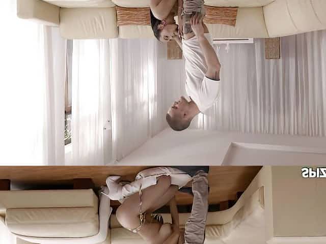 Brunette Hottie Sits Down On A Hard Cock On A Leather Sofa
