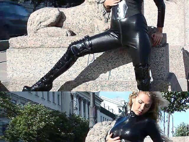 Eva Latex leather boots sucked large penis and screw juicy twat cum homemade german rubber hardcore
