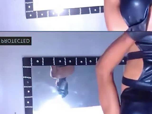 Beautiful golden-haired woman in ebony, leather panties and high heels is teasing on webcam, just for pleasure