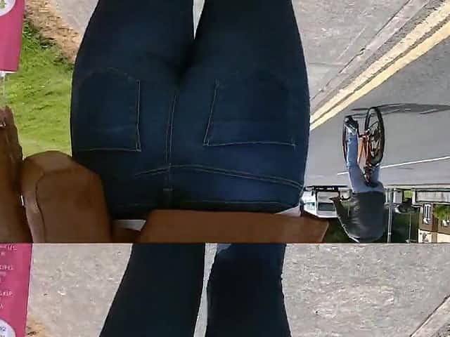 Candid ass in tight jeans tan leather jacket