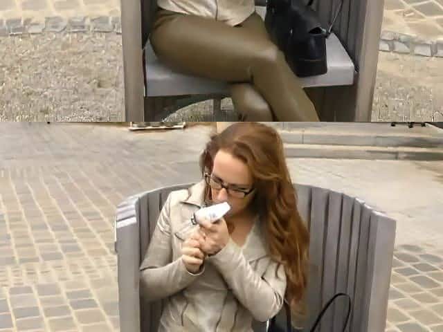 Big tits whore in latex banged outdoors by a guy in leather pants