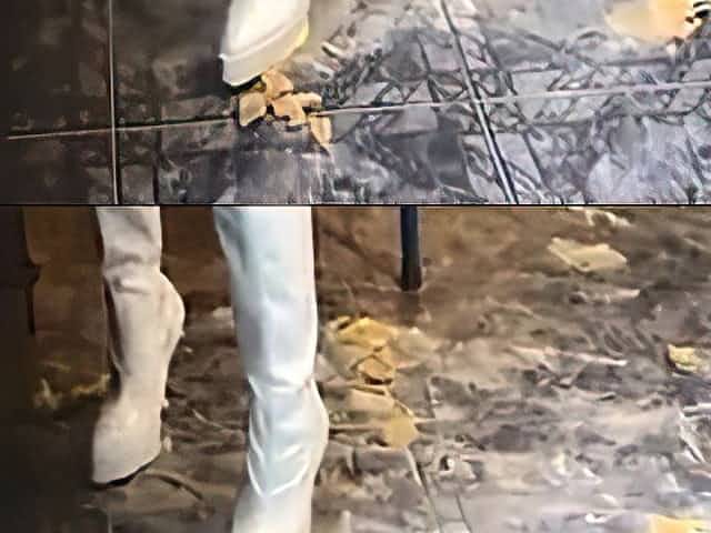 Kinky Babe In Leather Boots Nylon Panties Suspenders