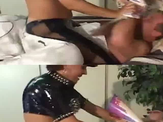 Hot anal threesome with two nasty leather-wearing German whores