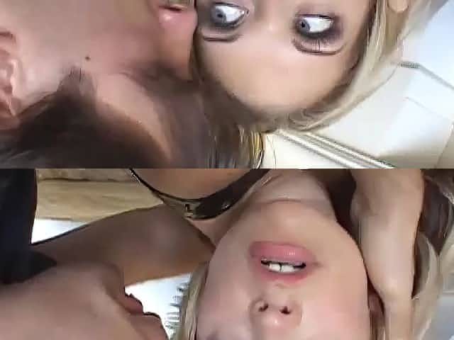 Blonde chick is so horny right now that she wants to make wild love with her man.