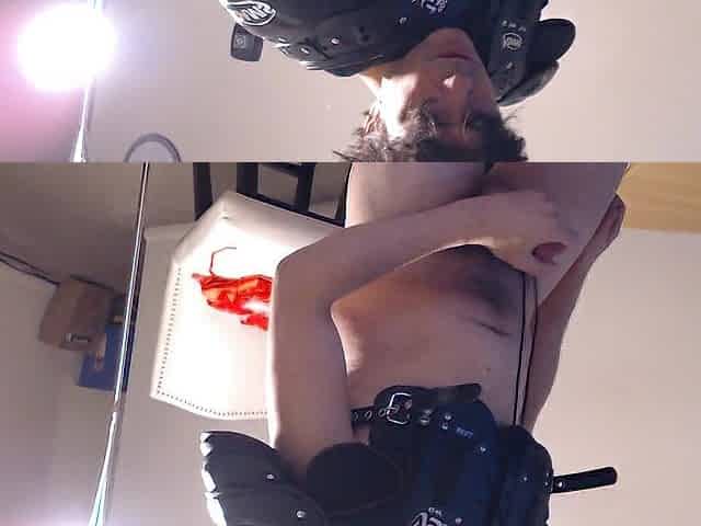 Red XXX masturbating in a leather outfit