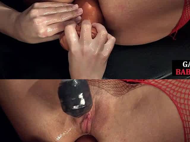 EVERYTHING BUTT - Anal redhead dyke in red lingerie assfucked with dildo