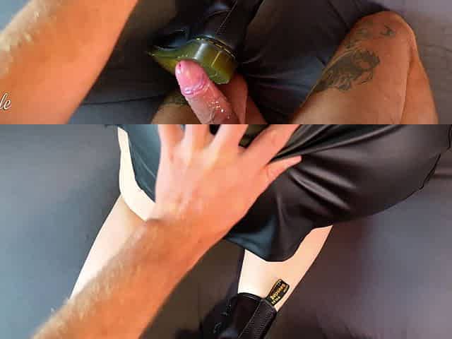 Big Ass Leather Leggings Grinding with a Huge Cumshot Ending