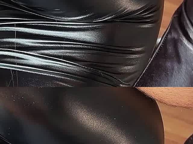 Bang My Constricted Vagina in Ripped Leather Wetlook Leggings