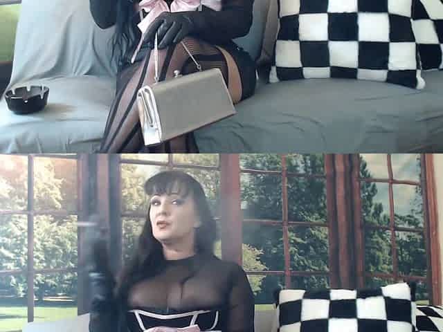 Corset Milf In Leather Glove Smoking