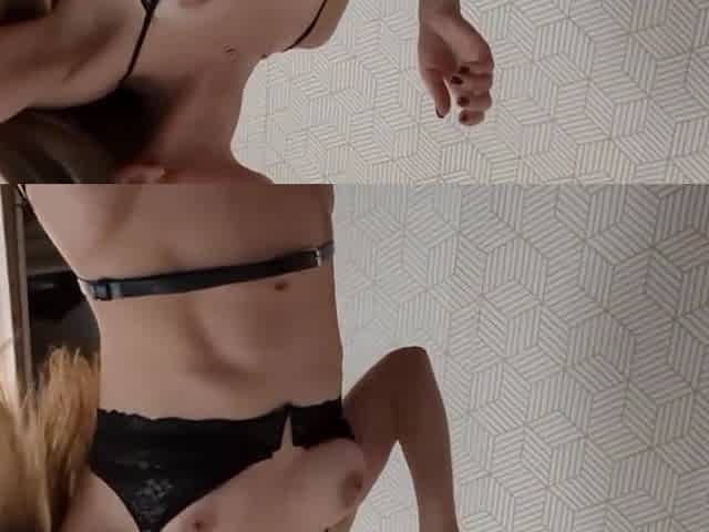 This Babe got me eager in her petticoat leather rubbing my rod with her moist vagina