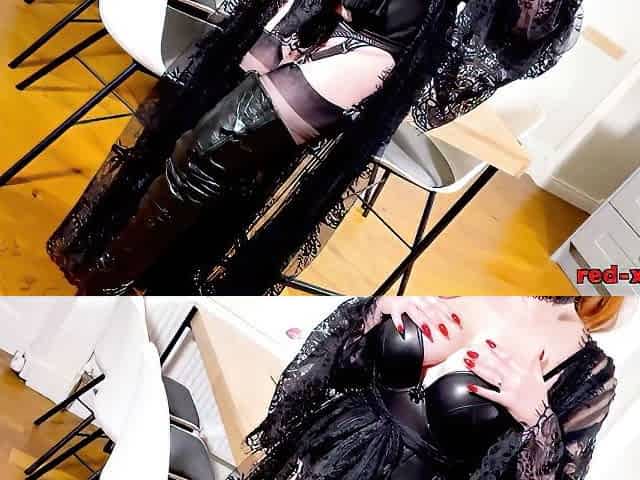 Leather-Clad mother I'd like to fuck Masturbates in Office Chair & Cums Hard