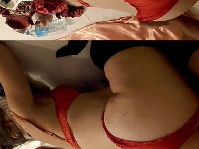 1768 02 - French Amateur Slut, Black Leather Pants, Satin Red Panties, Stockings, Heels, Doggy Style, Blowjob, Rimming