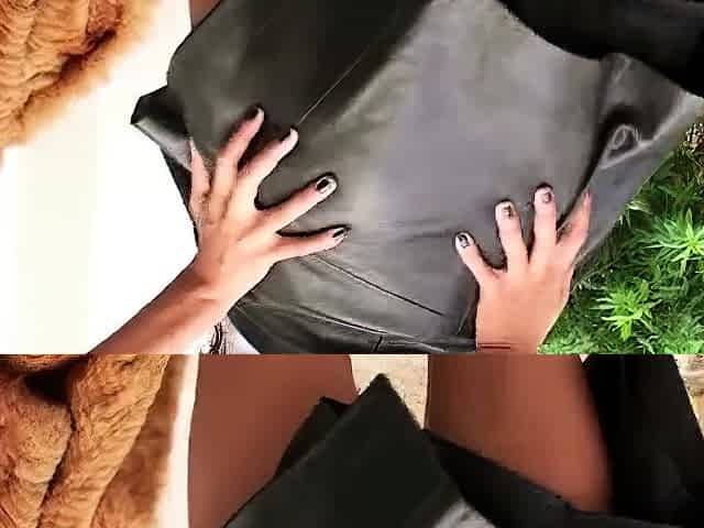 Horny mother-in-law asks her new leather skirt to be filled with hot cum